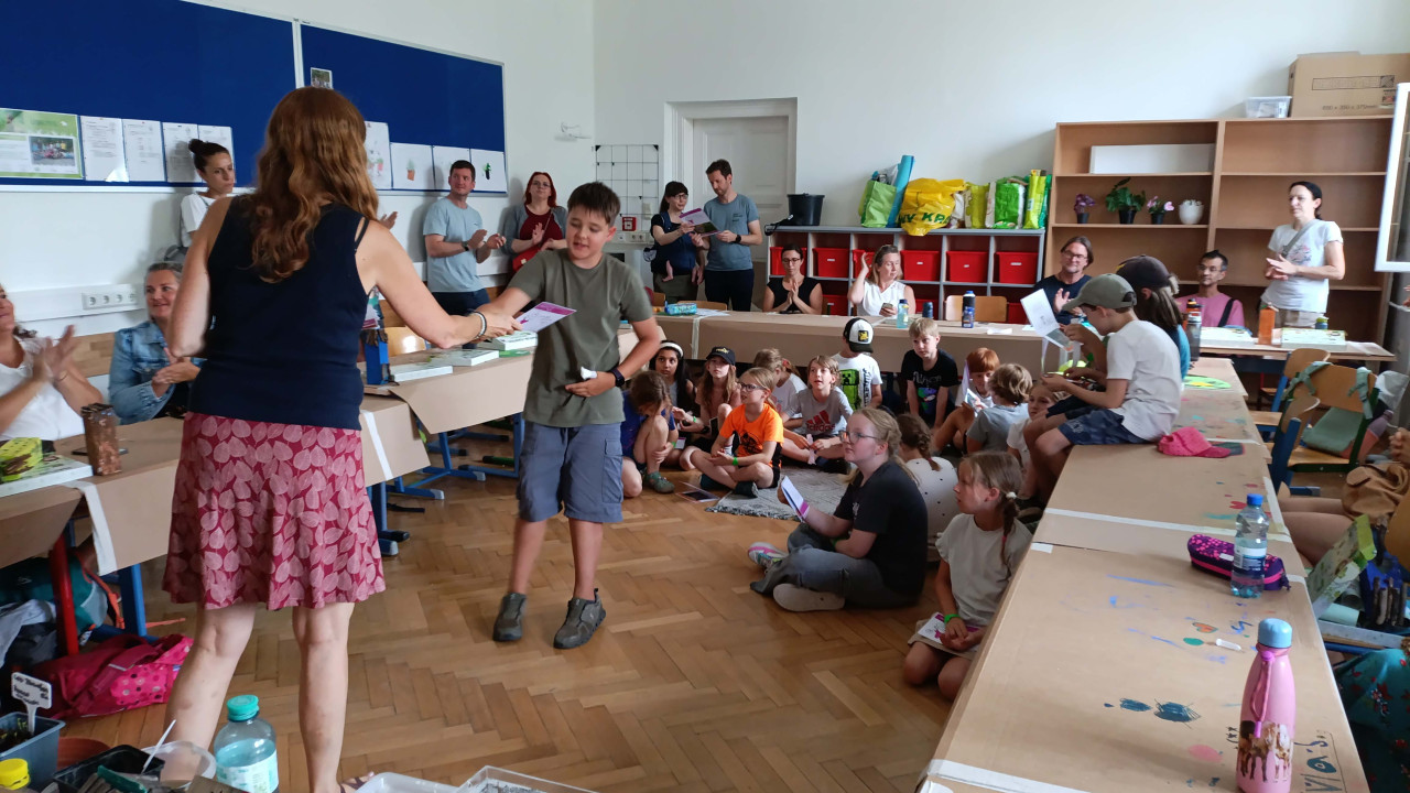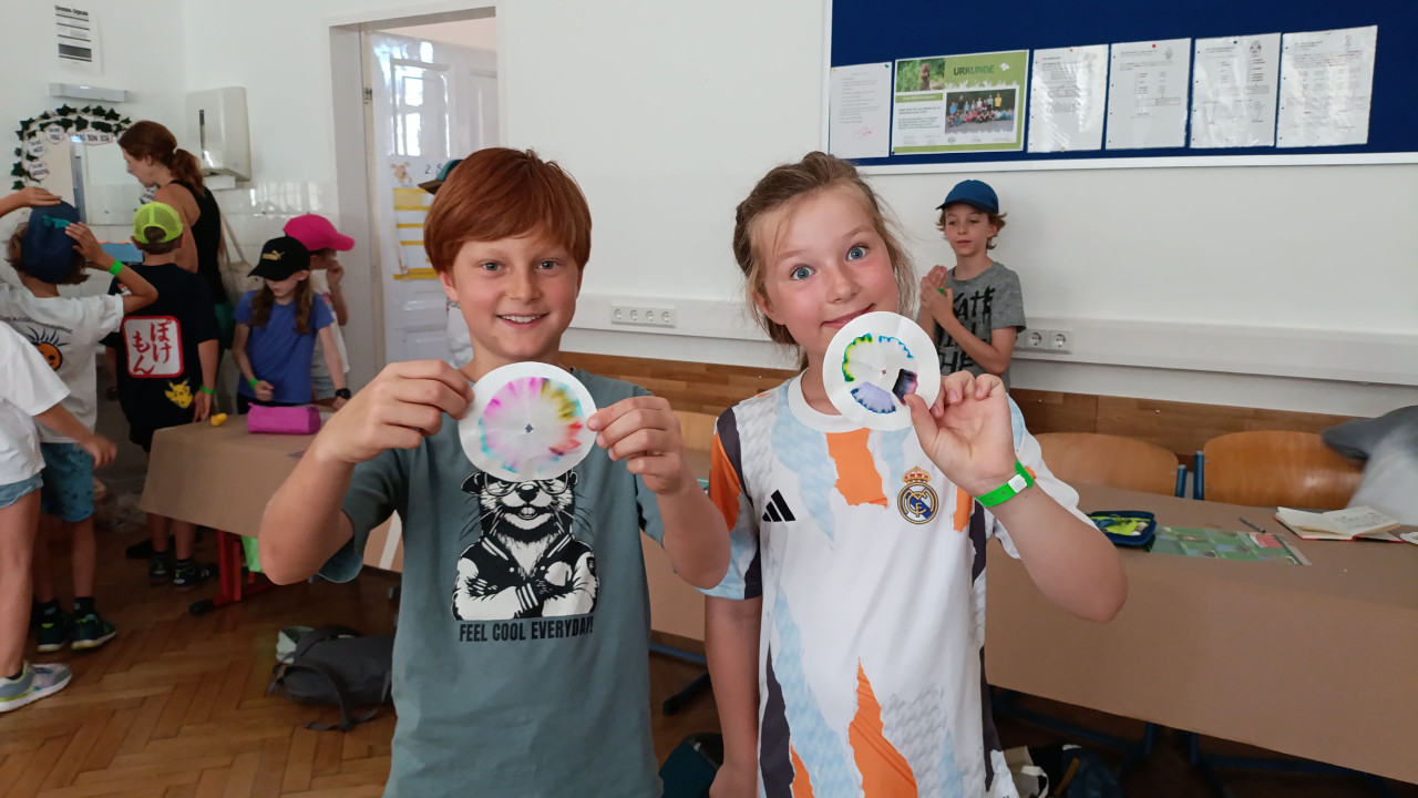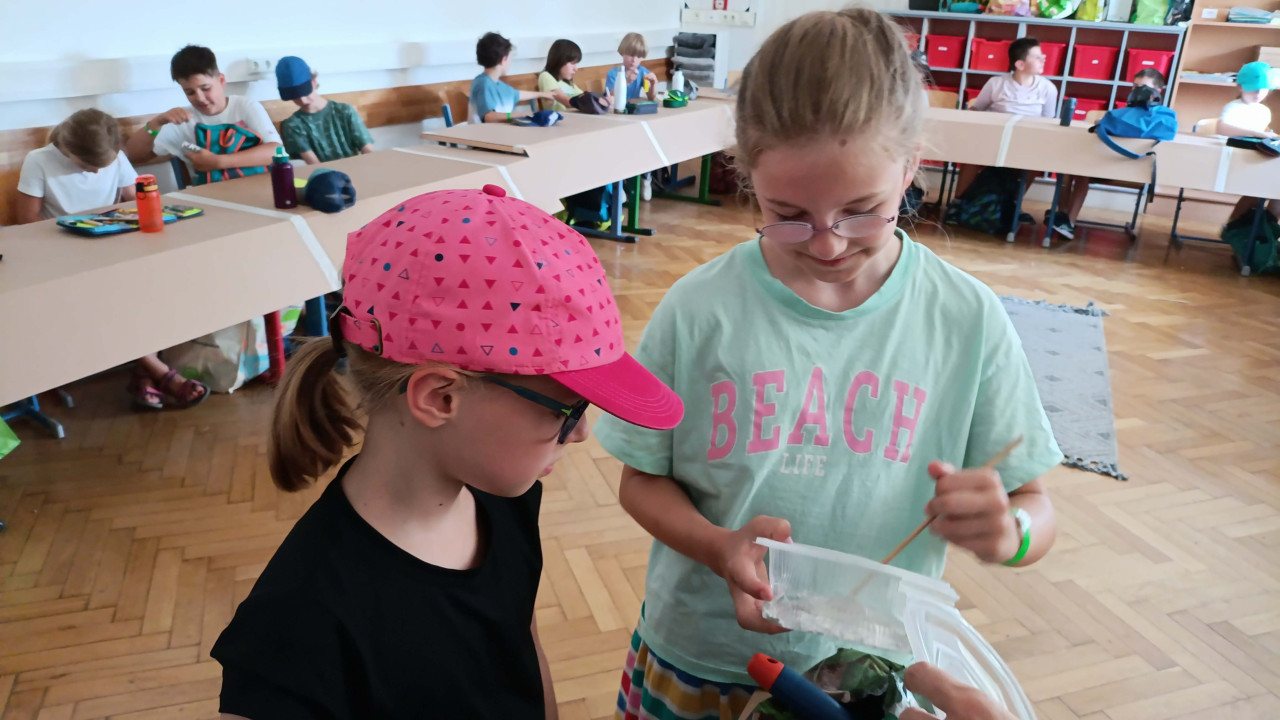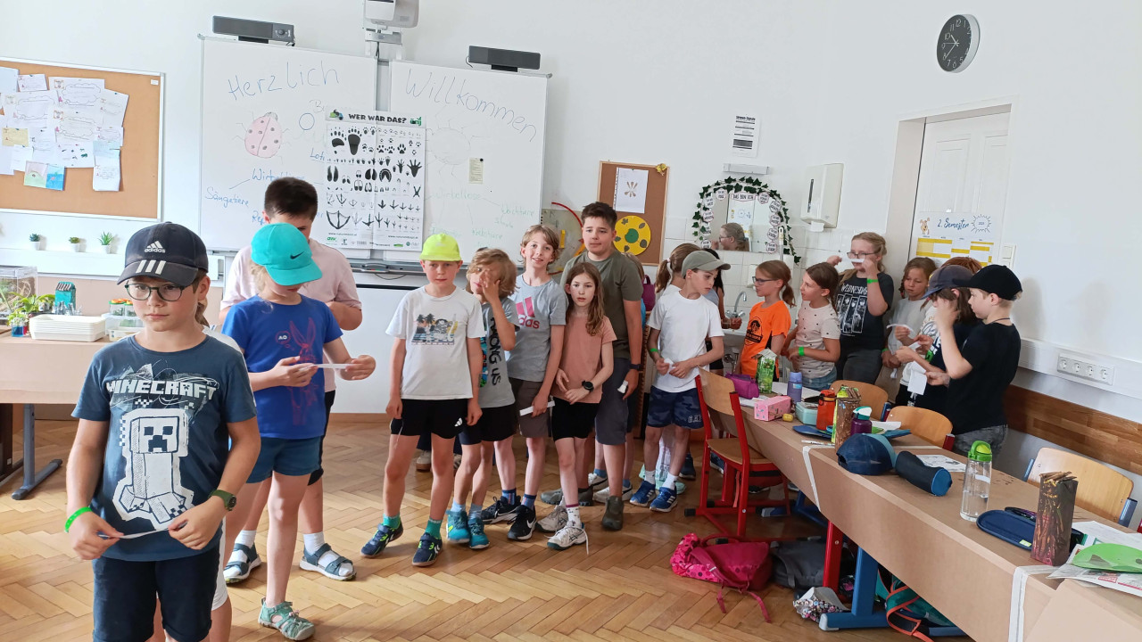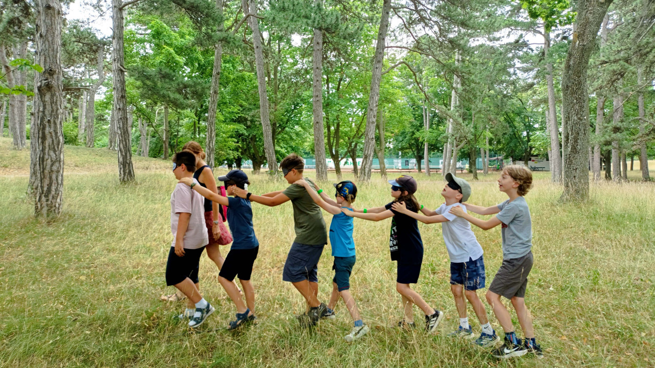 Unser heutiger Tag begann nicht wie gewohnt mit einem gemeinsamen Warm-up, sondern startete frühmorgens direkt mit unserem Ausflug zur Liesing. Dort machten wir uns gemeinsam ans Forschen: Beim Keschern entdeckten wir verschiedene Flusstiere und betrachteten sie ganz genau. Nachdem wir uns im kühlen Wasser ein wenig abgekühlt hatten, ging es auch schon zurück, wo wir das leckere Mittagessen genossen.