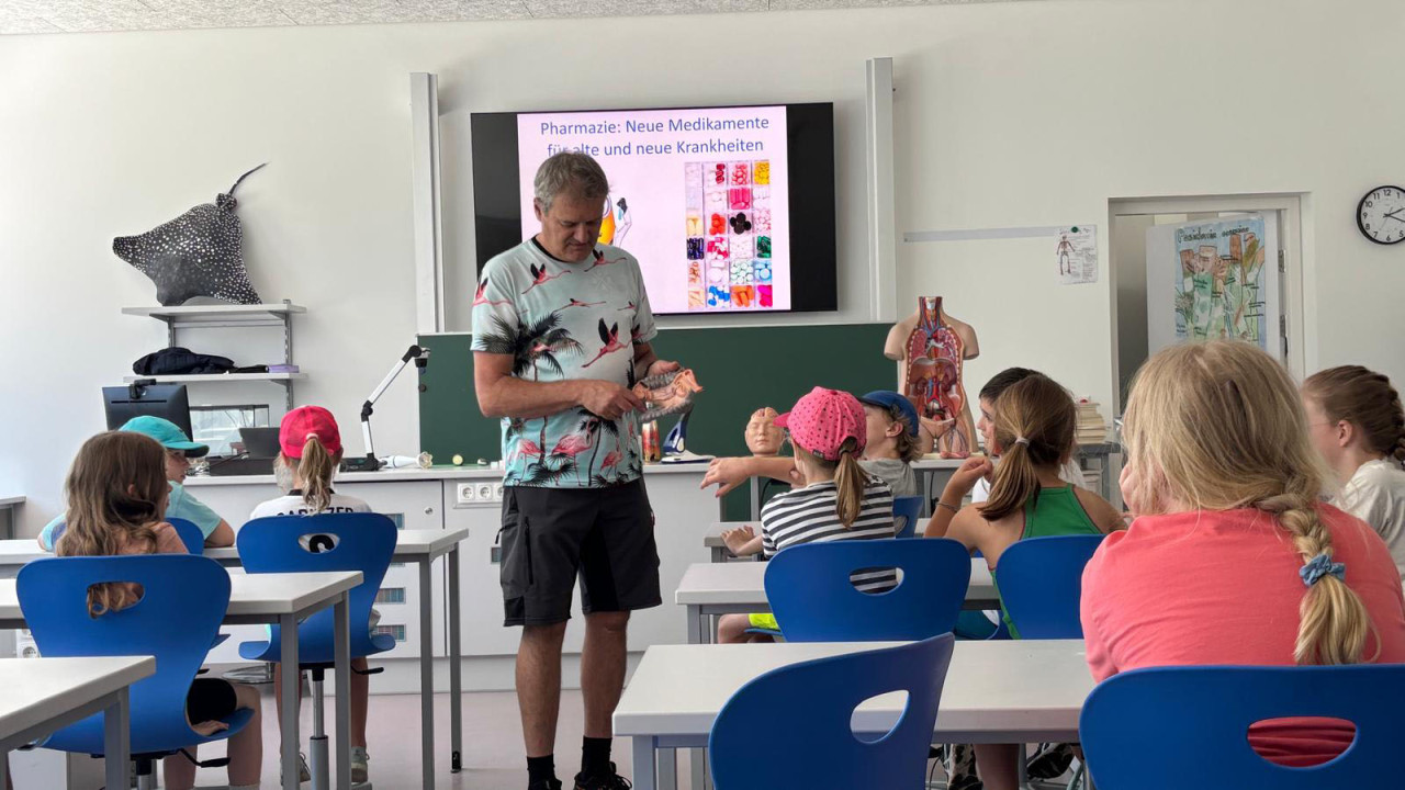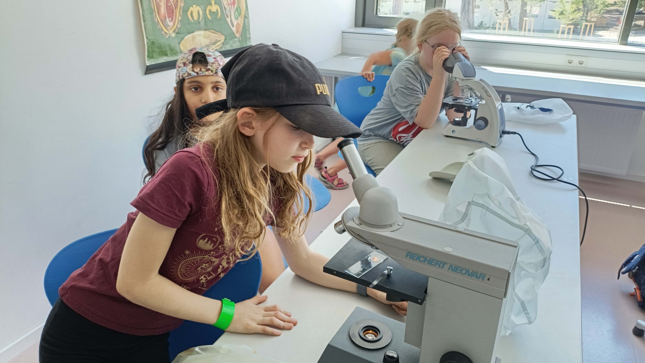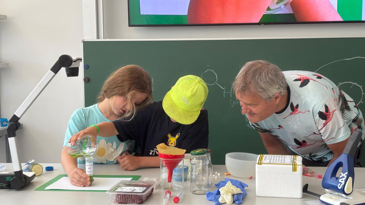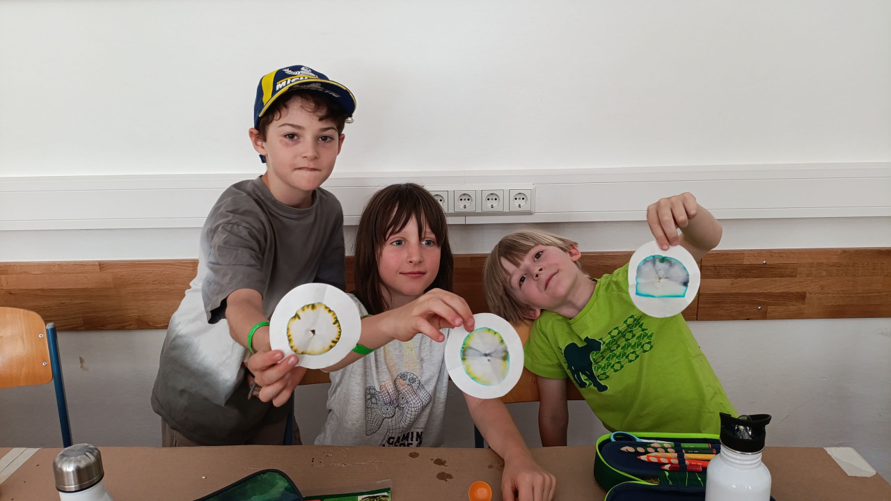 Heute in der Früh starteten wir mit dem Forschersong gut in den Tag. Im Kursraum angekommen präsentierten wir uns gegenseitig unsere Forschungsergebnisse zu unterschiedlichen fleischfressenden Pflanzen. Anschließend analysierten wir die Grundbegriffe der Fotosynthese und stellen eine Rohchlorophylllösung her, deren Farbstoffe wir mittels Papierchromatographie auftrennten. Auch unsere Filzstiftfarben trennten wir auf diese Weise auf. Auf der Wiese fingen wir Insekten, die wir anschließend unter dem Mikroskop betrachteten. Nach dem Mittagessen spielten wir ein Igelmystery und präparierten mit einem gekochten Ei einen Igeltunnel, in dem wir morgen hoffentlich Tierspuren entdecken. Danach spielten ein Wald-Suchspiel und bauten am Ende des Kurstages eine Nahrungspyramide des Waldes.