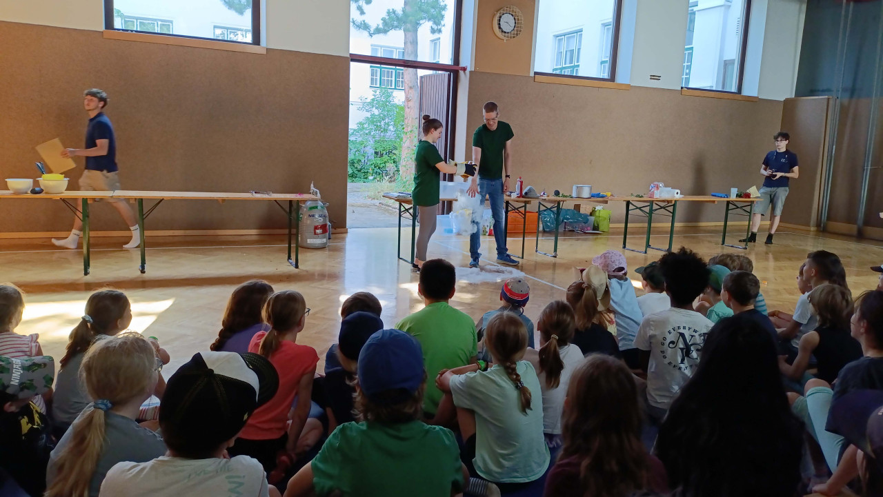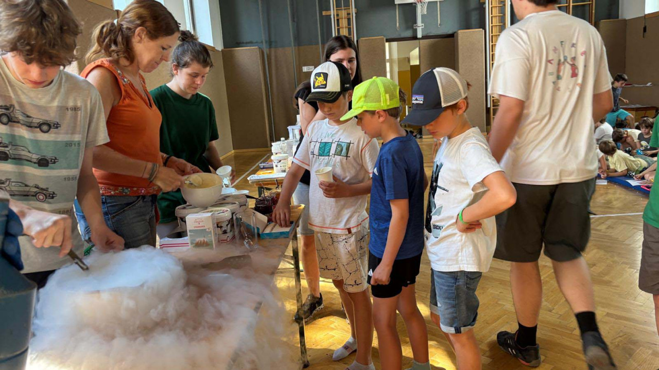 Nach einem kurzen Warm-up und dem Forschersong startete unser Tag mit einer spannenden "Ice Age Show": Wir bestaunten beeindruckende Experimente mit Trockeneis und flüssigem Stickstoff – und durften anschließend selbstgemachten Frozen Joghurt genießen.