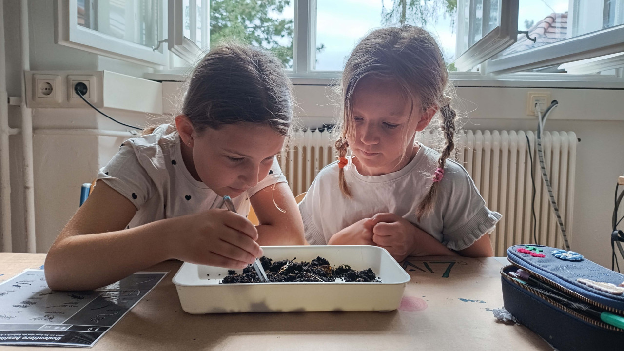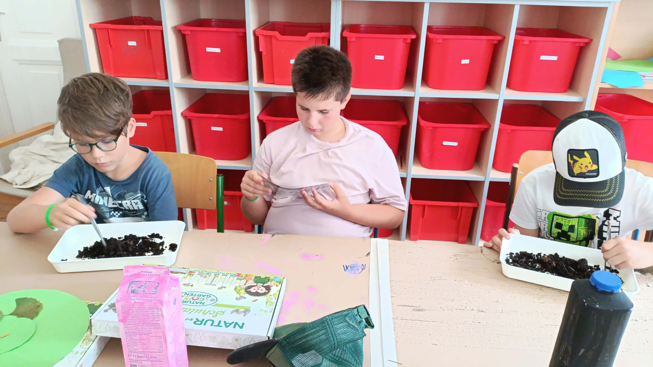 Direkt danach ging es auch schon los mit dem Forschen: Wir haben verschiedene Lebewesen in der Erde entdeckt und sie uns ganz genau angeschaut.
